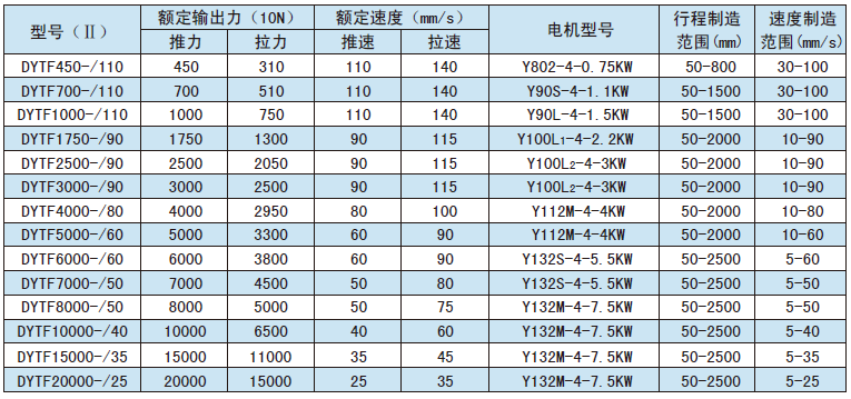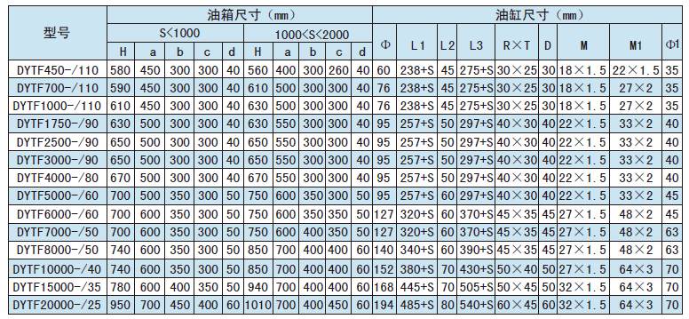 DYTF型分離式電液推桿外形技術(shù)參數(shù)(選型表)